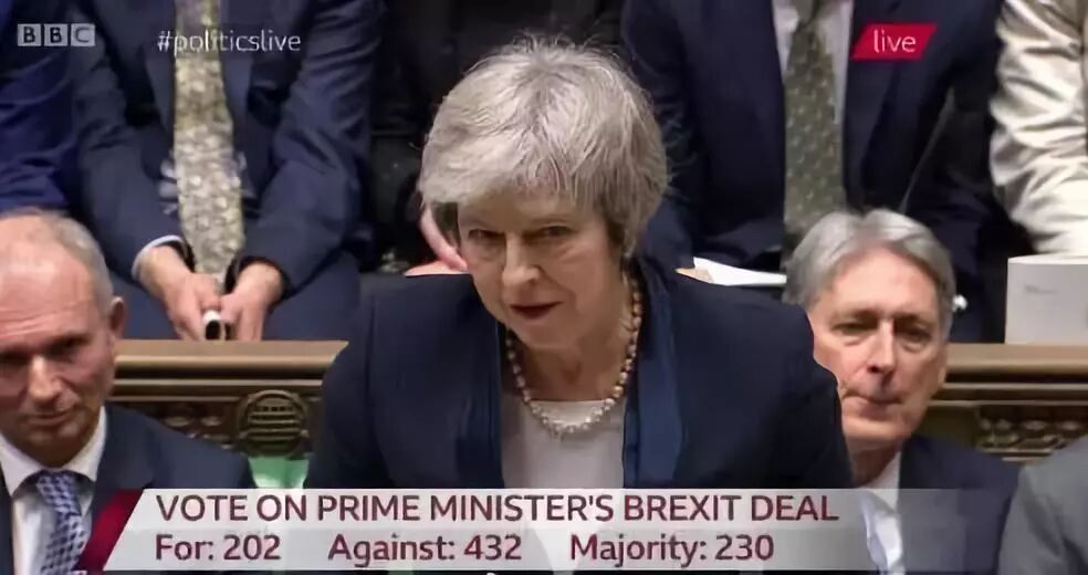 梅姨现在成了亲欧派和坚定脱欧派中间的一块夹心饼。15日,梅姨的脱欧计划在下议院遭受耻辱性的惨败,反对票足足多出了230张,成为英国政治史上最惨重失利。