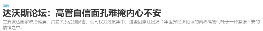 虽然达沃斯的私人飞机数量创下新高,但担忧的情绪笼罩着达现场,来看看外媒的标题: