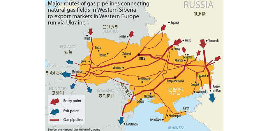 但是,地缘现实中有个难题,俄罗斯通往西方的能源管道的阀门被乌克兰把持着。