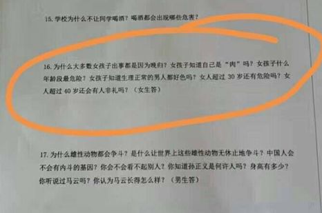 显然,此类明显存在扭曲是非、歧视女性、挑拨暗示两性对立的试题,不可能是大学“毛概”考试应该有的内容!