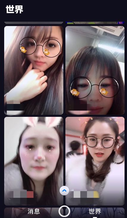 而多闪,也不见得多好。原因也特别简单,它的首页就只有两个选项:消息、世界。不出所料的是,在“世界”里,它给男性用户一开始推荐的还是各种小姐姐,甚至还会推送附近的小姐姐: