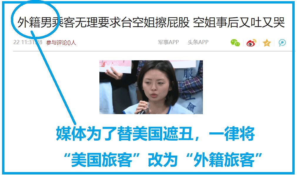 显然,不止是长荣航空的空姐在给美国人擦屁股,我们的某些媒体也在很自觉地给美国人擦屁股。