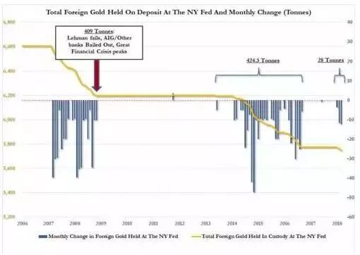 在这种局面下,各国央行存在美国的黄金存量或已跌至历史低点——5750吨。