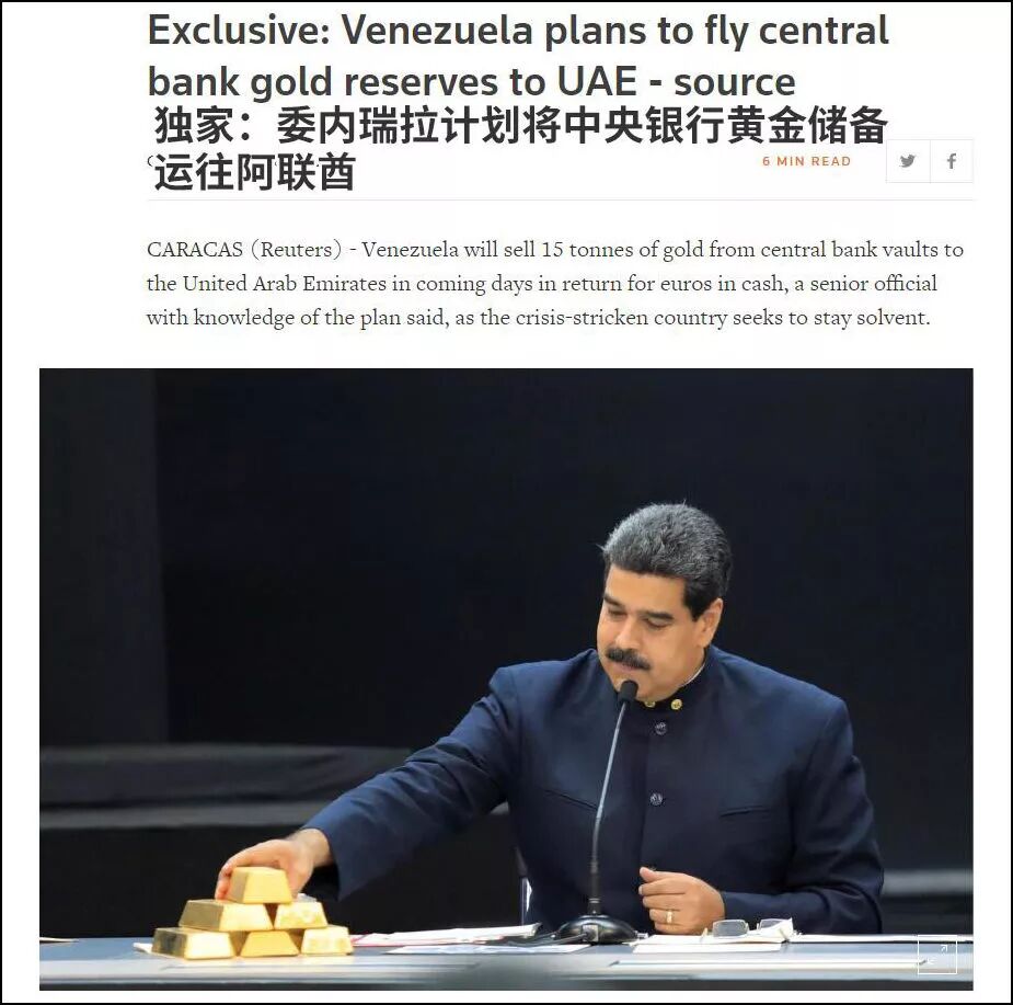 但是,偏偏在这个时候先是英国拒绝其提取价值12亿美元黄金,随后是20吨黄金被运走不知去向。迫不得已,委内瑞拉计划在2月前向阿联酋出售29吨黄金,换取欧元现金,支撑偿付能力,进口基本商品。