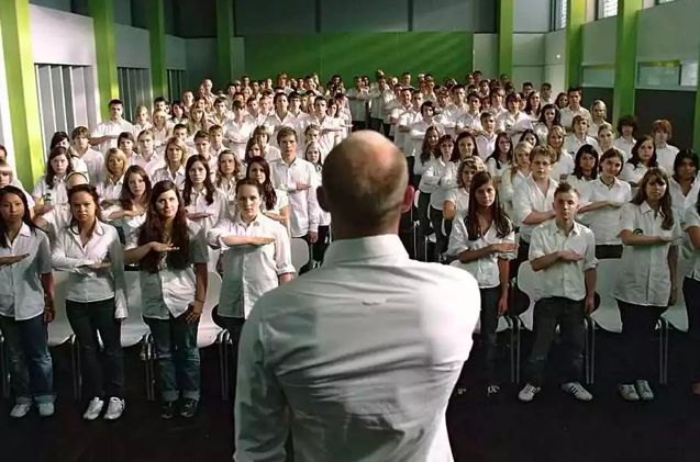 德国有一部电影《浪潮》,讲述的就是一位老师在班级搞了一个可怕的实验:用五天的时间,就能把班级里的学生训练成法某斯团体,让他们盲目服从于权威,甚至排斥、伤害那些不服从的个体。