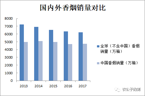 相较于世界范围内(除中国)香烟销量的缓慢减少,中国的烟草销量总体稳定,且在2017年绝地反弹,止跌反升。2018年末国家烟草专卖局、中国烟草总公司在生产经营调度会上表示,要确保2019年销售4750万箱,比2018年增加12.2万箱,相当于增加了61亿根烟。按此匡算,如果我国3.15亿烟民数量保持不变,意味着每名烟民每年要多吸20根烟;而如果每名烟民平均每天一盒烟的吸烟量不变,新增的12.2万箱意味着我国要增加83.6万烟民。