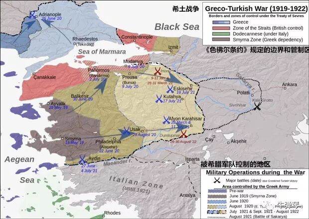土耳其到了最危险的时候,正是在这种屈辱中,土耳其“国父”凯末尔崛起,最终将希腊军队赶出了小亚细亚半岛,保证了土耳其本土的完整。