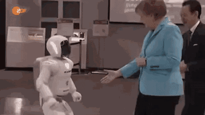 机器人:你已经傻了,我不和糊涂老太太握手!