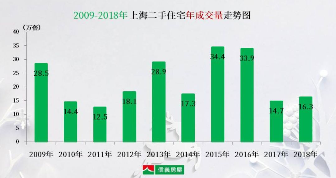 上海,我去年6月份调研的时候,认为2018年二手房成交量不会超过15万套,因为新房会加速上市,新房有价格优势会分流客源,不过最后成绩还是比我预测的好一点,有16.3万套,较2017年增长10.93%,至此首先可以确定的是,二手房成交量见底了,2019年成交会比2018年更好。