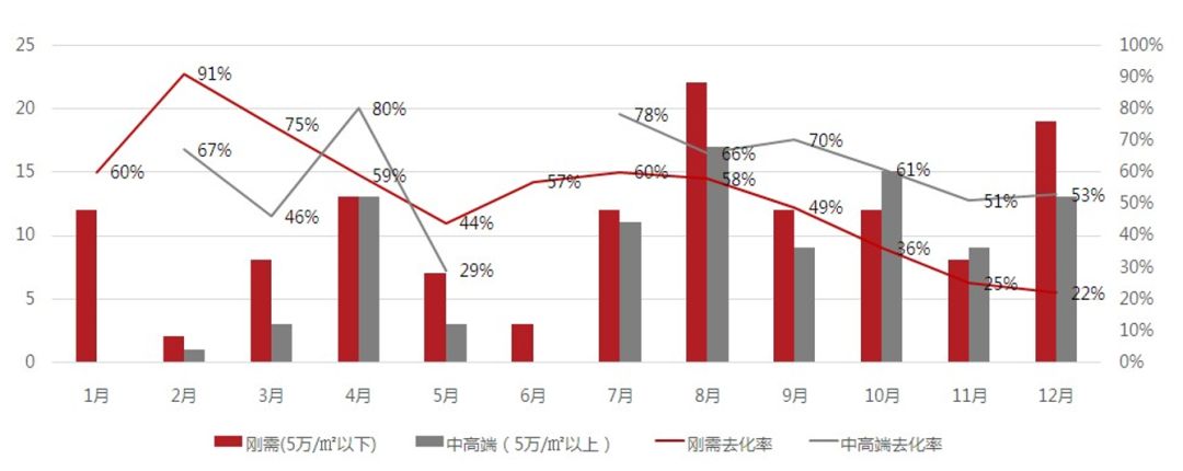 但新房因为新上市的基本都是共有产权和限竞房,而且主要分布在郊区,限竞房产品超过7成都是90平米以下,无法满足市场的改善型和高端需求,去化率低,供需错配,因此2018年存量接近2015年,但成交量还不到2015的一半,也比2017年少,很不正常。