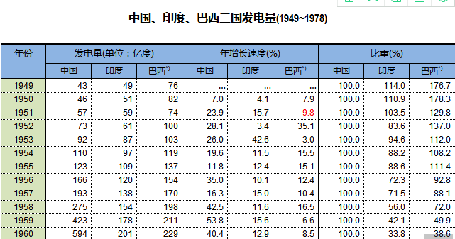 1949年,印度发电总量达49亿千瓦.时,是同期中国发电总量的1.14倍!