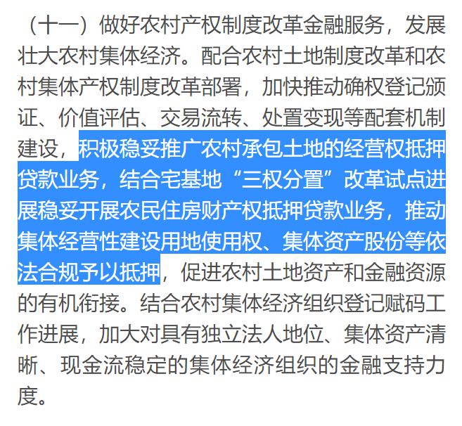 《指导意见》第11条明确体现出央行要大规模扩展农村财产的抵押权力,这一点太重要了。