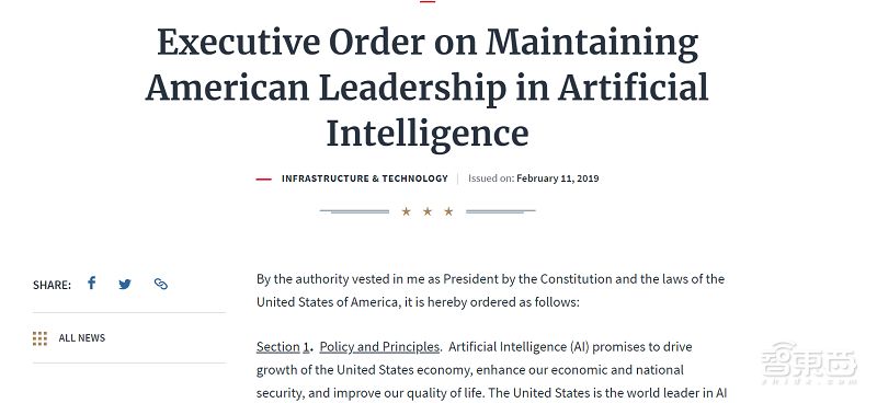 本文转载自微信公众号“智东西”,原文首发于2019年2月12日,标题为《特朗普急眼了!签署总统令捍卫美国AI霸主,立下六大目标》。