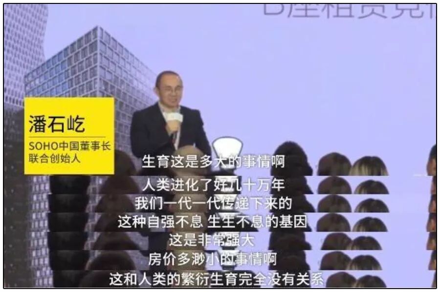 这是年前潘石屹在自己公司的物业推介会上对“房价限制生育”问题的回答,听起来有点“何不食肉糜”的感觉。