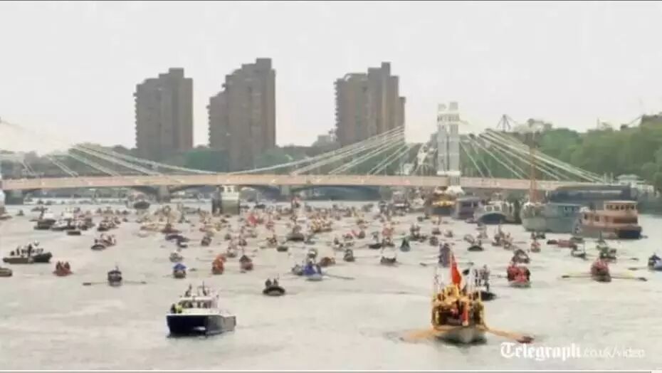 ▲而这,也是英国《每日电讯报》刊登的照片,2012年6月3日,英国女王登基60周年“钻石”庆典,泰晤士河的游行庆典,英国军方非常“机智”的暂停了海军的阅舰式。和1938年那张武力展示照片一对比,心酸二字不足以形容皇家海军今日的落魄。