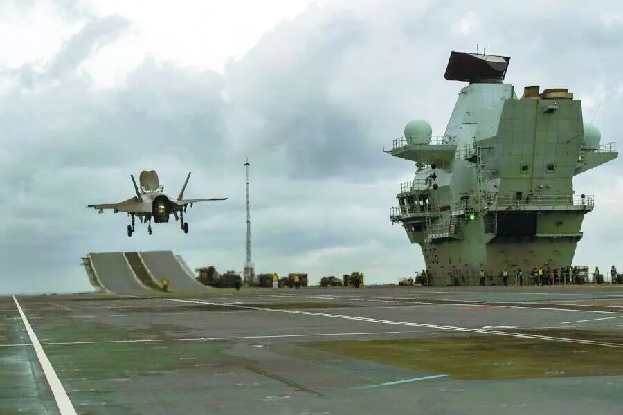▲2018年11月,美军F-35B战机在英国新航母上降落。