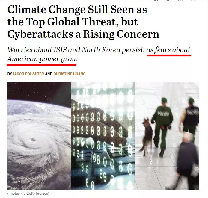 第三件:各国民众均视美国为最大威胁。