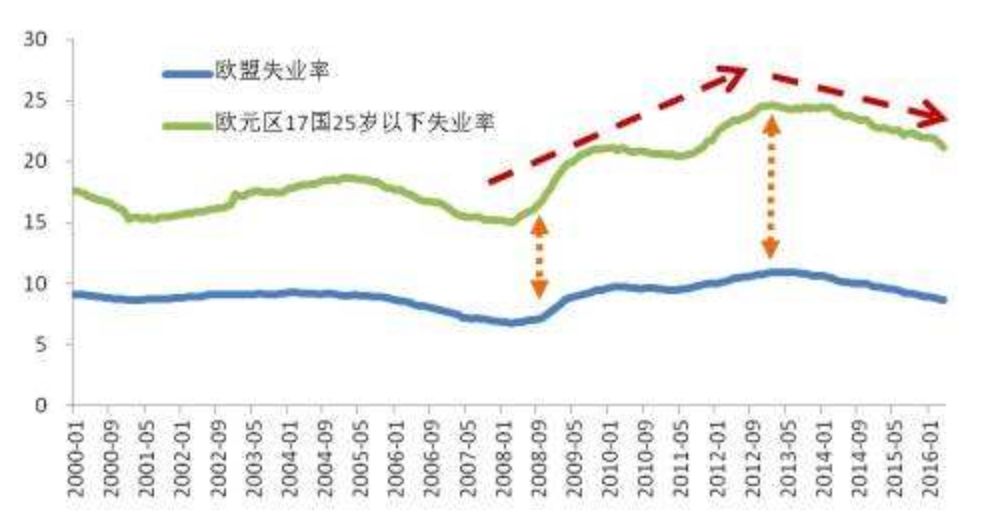 (上图:欧盟各国失业率居高不下,并且有上升趋势)