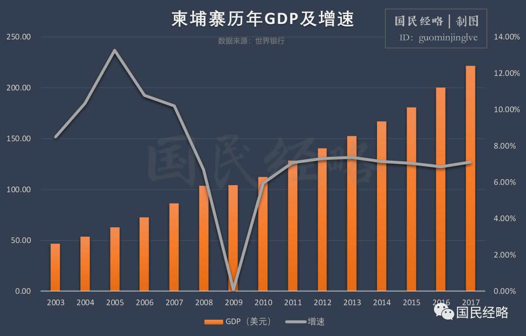2018年,柬埔寨整个国家的经济总量只有200多亿美元,仅相当于广东省排位垫底的韶关市。