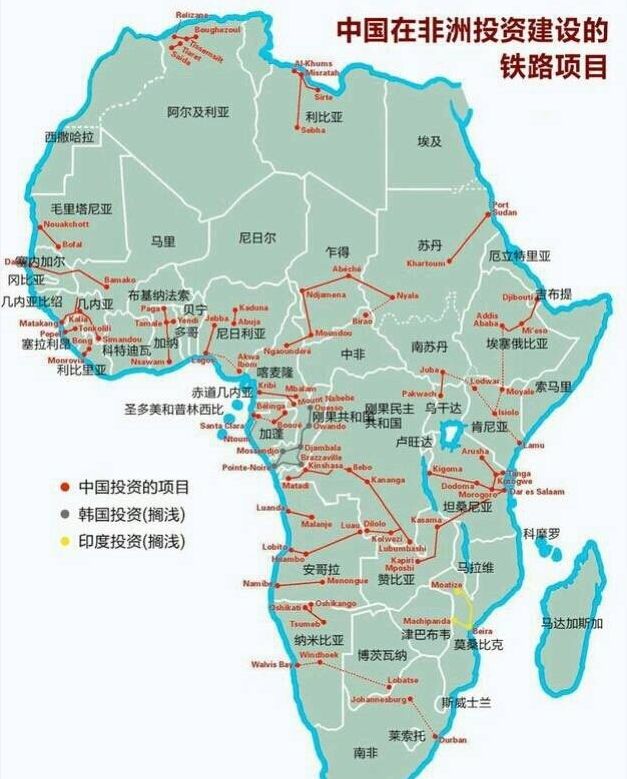 去年3月,俄罗斯媒体曾放出一张图:中国在非洲的铁路项目。