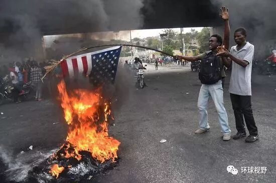 ▲海地人民焚烧美国国旗 图自今日俄罗斯(RT)