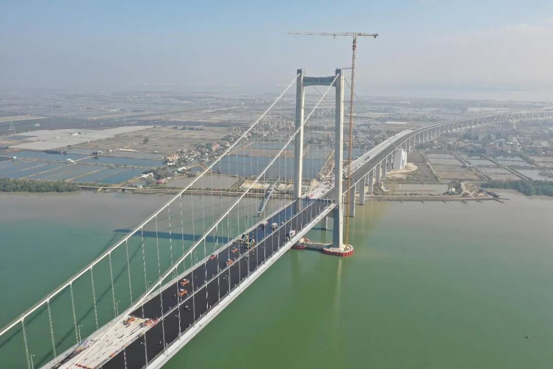 2019年1月30日,粤港澳大湾区又一重要过江通道虎门二桥项目的两座主桥钢桥面环氧沥青铺装工程完成,预计今年5月1日前通车。(图/视觉中国)