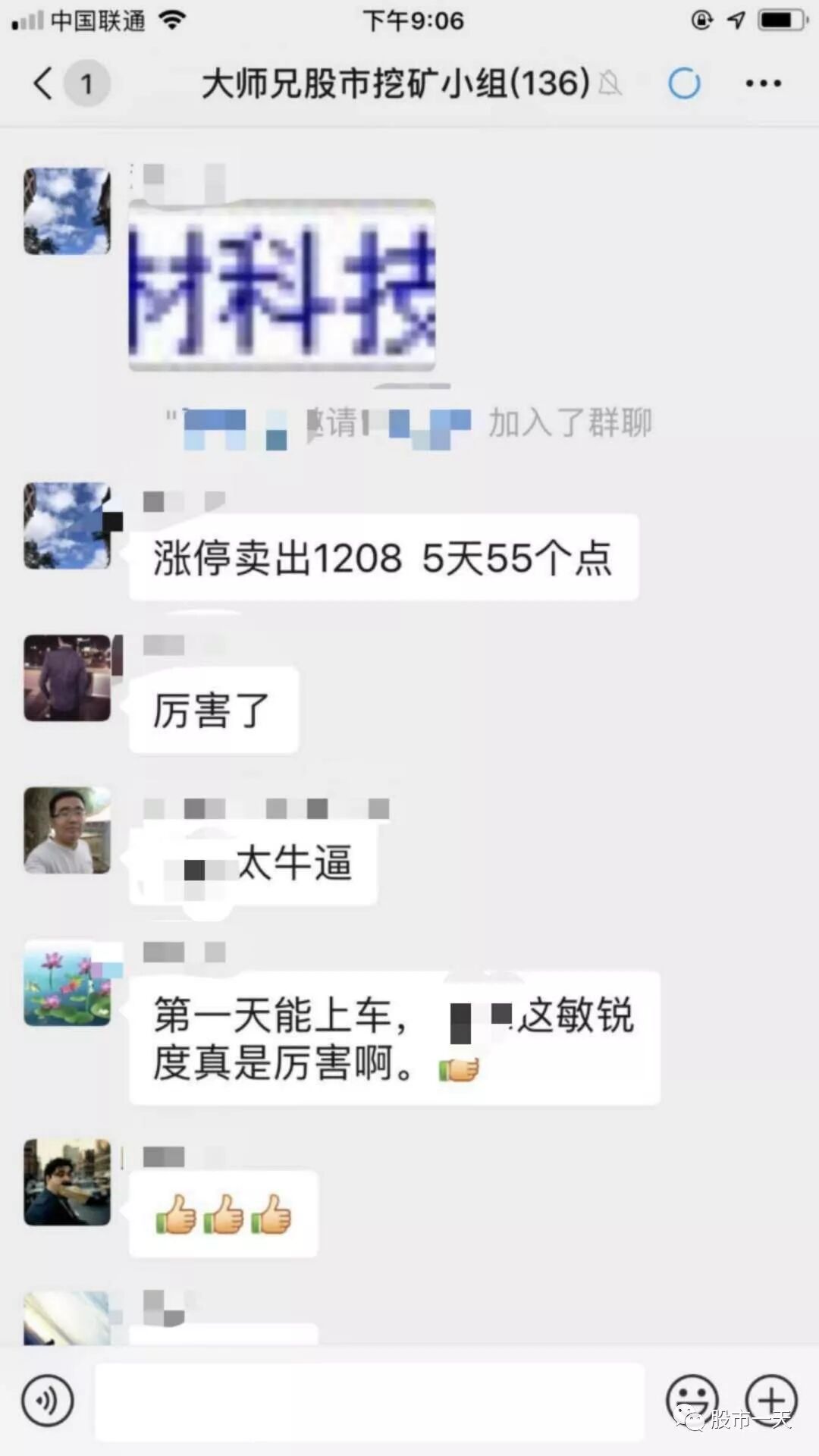 今天,我的一个游资朋友,在我的“挖矿小组”里嘚瑟: