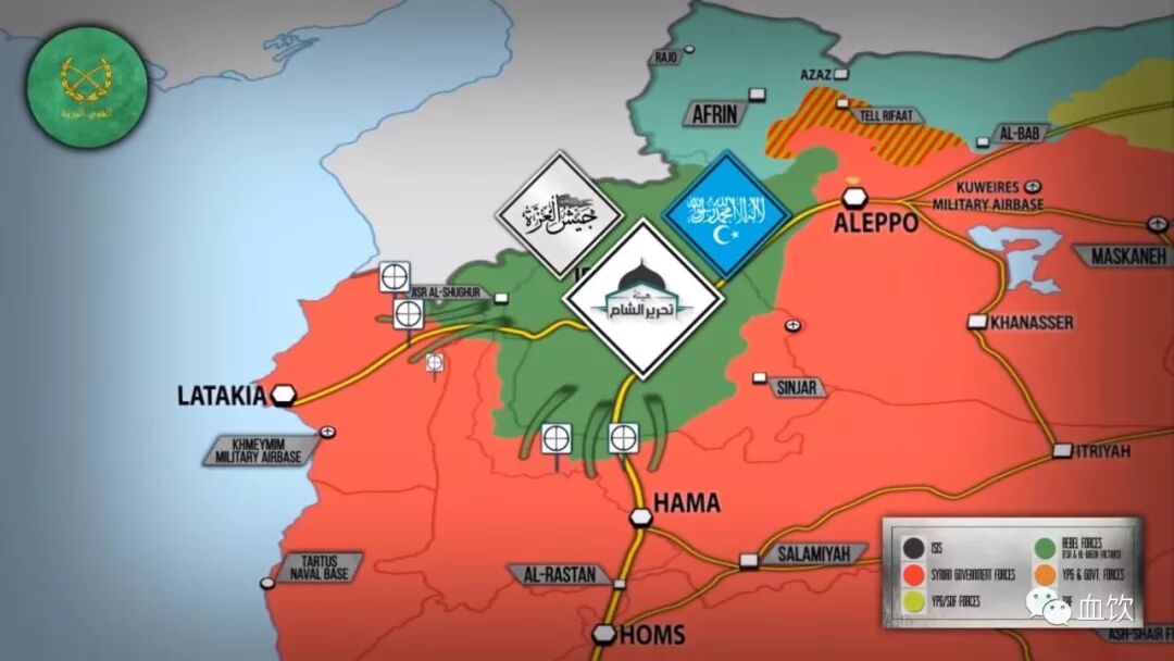 上图为叙利亚伊德利卜省势力分布图,从中可以看出土系反对派武装(深绿色)与HTS/TIP恐怖分子(浅绿色)的控制区犬牙交错。土系反对派武装在1月份时遭到HTS打击丢失大量地盘。