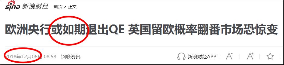 大家看看这则新闻:在2018年12月的时候,欧盟还在说“或许退出QE”。