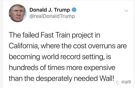 失败的加州高铁项目,成本高到了创造世界纪录,成百倍比我们极端需要的边境墙更加昂贵。