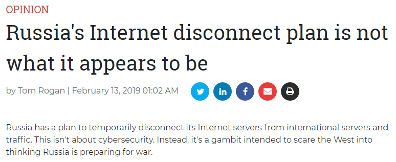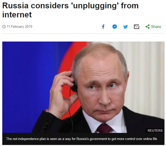 本文转载自微信公众号“观察者网”(ID:guanchacn),原文首发于2019年2月15日,标题为《俄罗斯“断网备战”,这是要干什么?》。