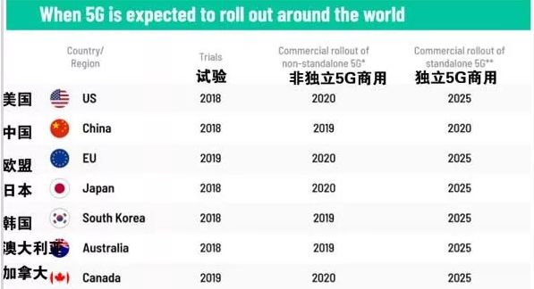 美国欧亚集团预测5G在世界各国部署时间
