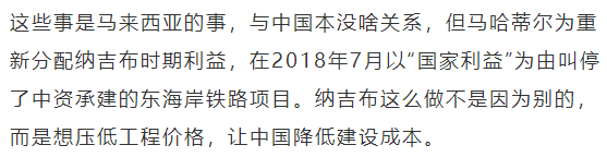 三大后果让马哈蒂尔政府开始承受巨大压力,于是在2018年11月又不断向中国抛出橄榄枝,喊话中国企业抓紧到马来西亚投资,并称愿意聆听中企需求。