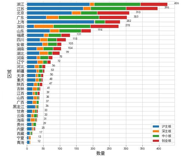 A股上市公司数量的区域分布(来源:大源观察)