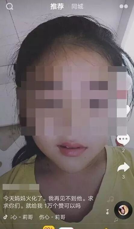 2018年8月,抖音曾出现一批“妈死求赞”的女童。一个昵称为“Over agajn”的女童在抖音上发布一段哭诉视频。