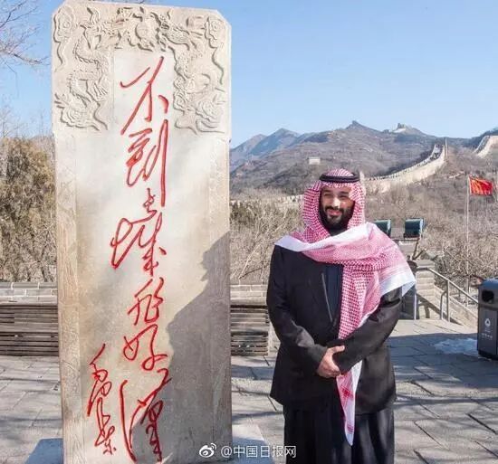 今天这位王储抵达了中国,游览了八达岭长城,驻足观看毛泽东题词“不到长城非好汉”的石碑,并合影留念,一副乖宝宝的模样。