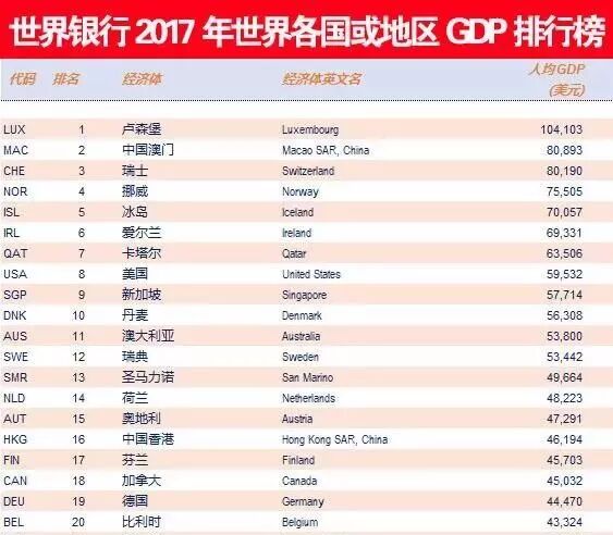 澳门虽然也是大湾区中心城市,但是经济总量较小,2018年的GDP总量大概在5000亿左右,遑论香港广州深圳,就是与佛山东莞也有一定差距。但是澳门的人均GDP非常高,2017年,澳门人均GDP八万多美元,亚洲第一,全球第二,仅次于卢森堡。