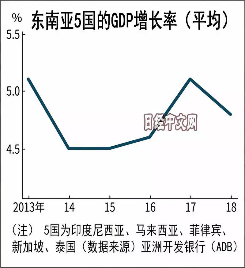 两大强国的贸易摩擦、美国加息给东南亚的新兴国家造成了阴影,2018年5个主要国家的GDP同比增长4.8%,是3年来首次出现增速放缓。日经中文网指出,就连维持高增长的菲律宾也出现了消费乏力的迹象。