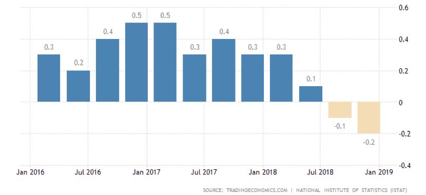 20年来意大利的经济几乎陷入停滞,10年内经历3次衰退,意大利政府认为出口萎缩是主因,欧盟委员会指出意大利自己发展不好别怪别人,问题是在于内需不旺,民粹政府的政策飘忽,公共债务高企。