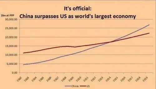 第一、按照购买力平价计算,中国正式超越美国,成为全球第一大经济体。以购买力平价计算,1980年美国经济占世界25%,中国仅为2.2%。2014年,中国占世界经济份额约为15%,中国份额约为16%,超出美国一个百分点。