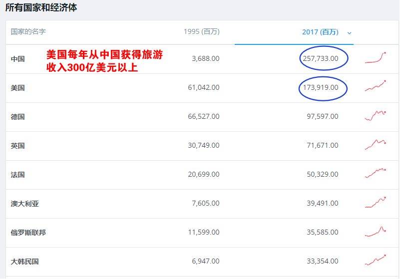 我们来看看2017年世界旅游支出最大国家的排名:在1995年的时候中国人旅游支出仅为37亿美元,美国是中国的20倍;2017年,中国人旅游支出为2577亿美元,已经超过美国的1739亿美元。试问:如果不是中国人富有了,怎么会有那么大的旅游支出?