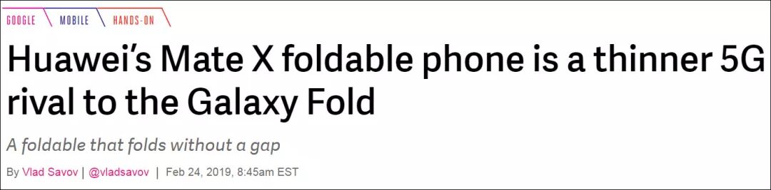 美国知名科技网站The Verge对Mate X毫不吝啬的称赞道:
