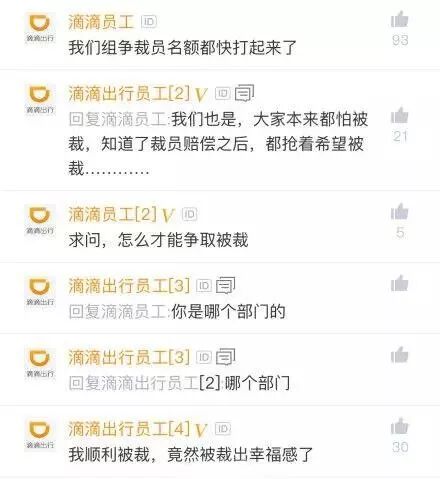 不过不同于别家公司裁员时的怨声载道,滴滴裁员的高补偿方案,让很多员工都“被裁出了幸福感”。