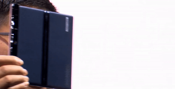 MateX的单一OLED显示屏实际上提供三重功能。当设备被折叠时,你基本上有一个双屏智能手机,第二个显示器在后面,允许你用主摄像头拍摄自拍,或者与另一边的人分享主显示器上的内容。