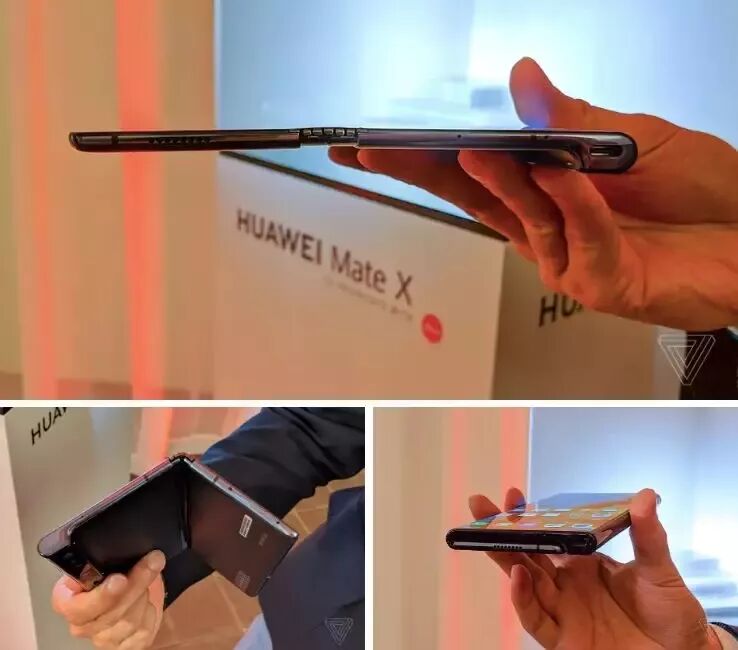 内折的Galaxy Fold的厚度达到了6.9mm,当折叠之后就达到了14mm以上, 因为还需要加上转轴不能完全折叠的厚度。Mate X由于不需要水滴或者刘海,其中一面就可以达到真正的全面屏。