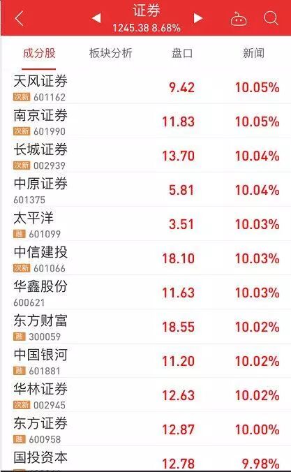 作为行情的风向标,42只证券股票全部涨停,多只券商股价甚至翻倍。