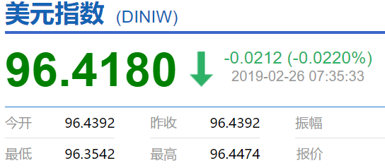 2月25日,美元指数下跌至96,美元兑人民币跌至6.6926。