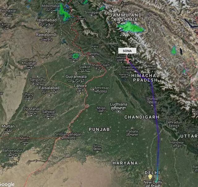 从新德里起飞的EMB-145机动至印尼边境一侧,距离伊斯兰堡300公里处为印度空军提供情报支援。