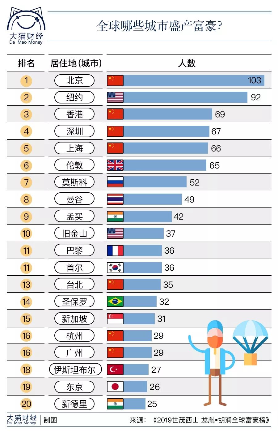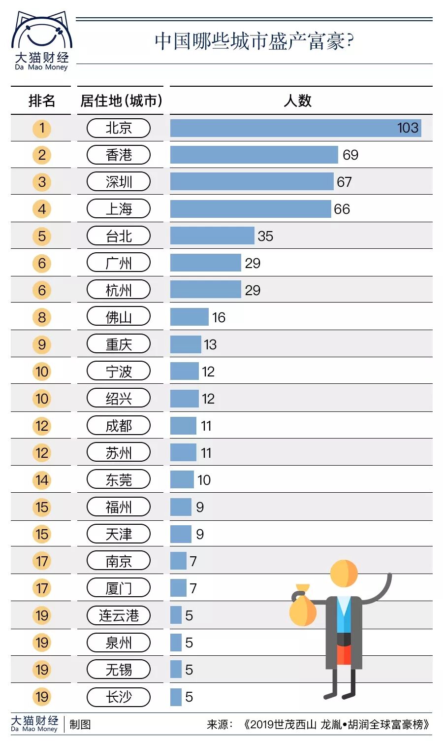 如果看看中国富豪的城市分布,也很有趣。