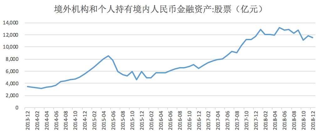 截至2018年末,央行口径下境外机构和个人持有的境内人民币股票资产达到了1.15万亿。可见外资已与公募基金和险资呈三足鼎立之势。未来随着各大指数纳入A股,外资将对A股的局势带来不可忽视的影响。
